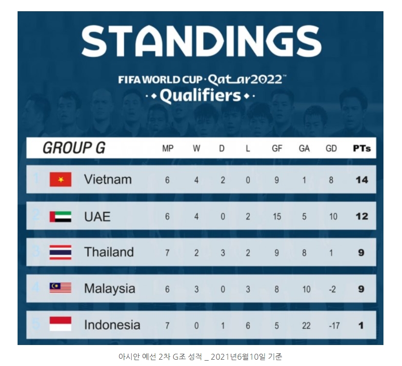 현재 베트남은 좋은 성적으로 최종예선 진출이 거의 확정되었다.